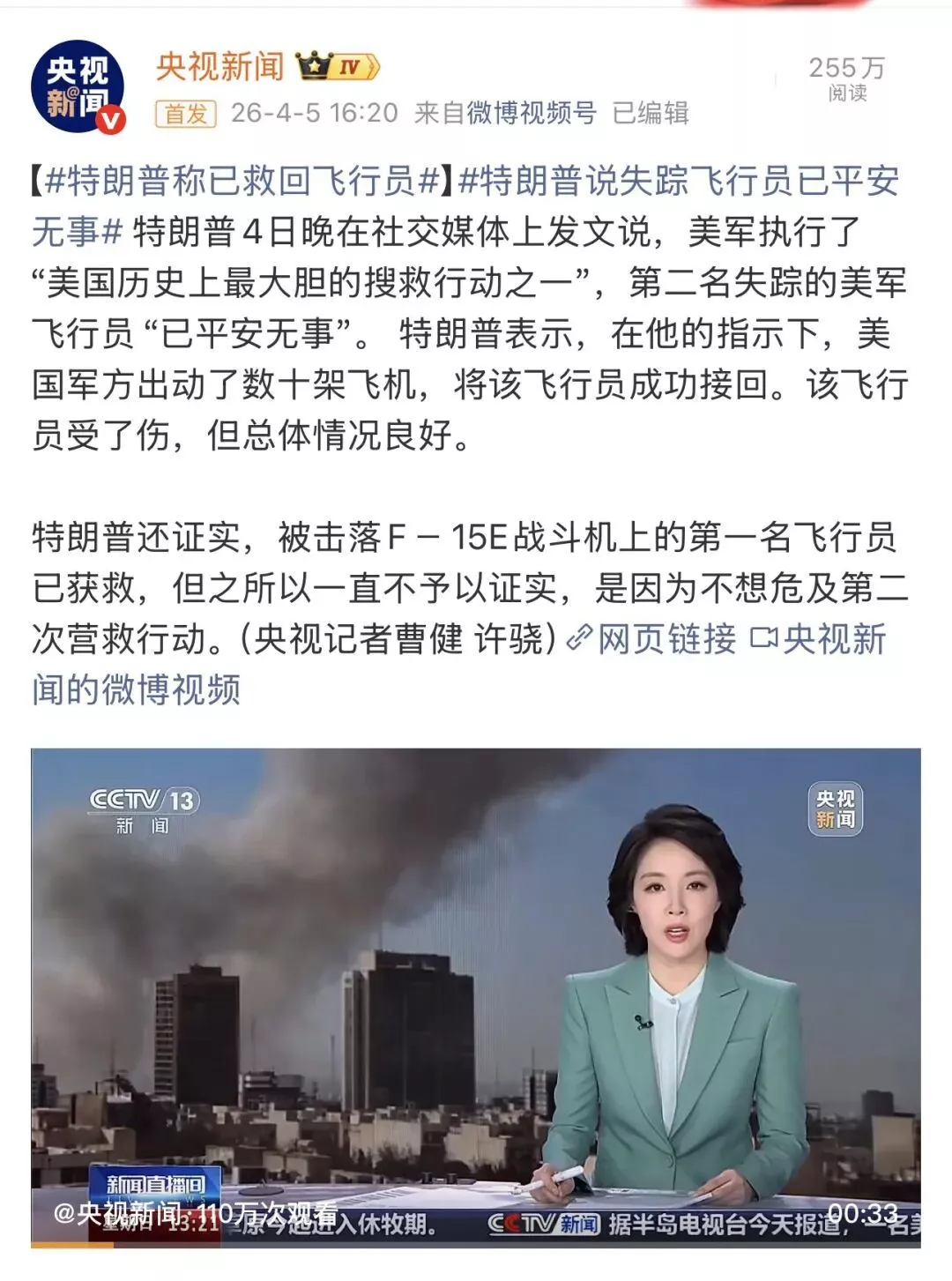 美国飞行员已获救,但谣言满天飞历史押韵2小时前
