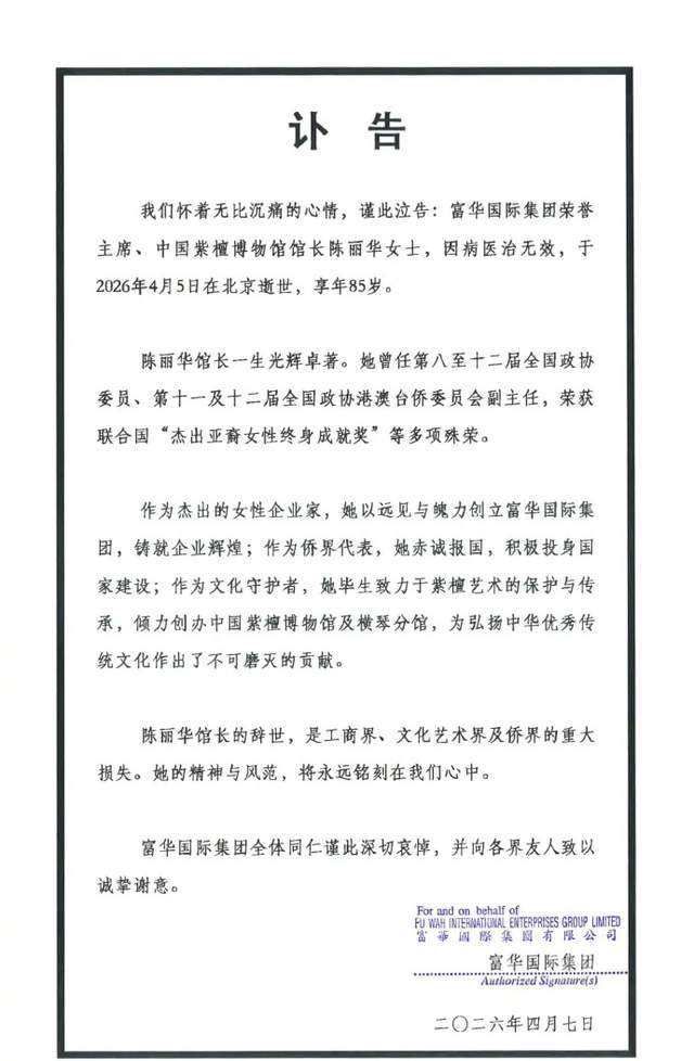 女企业家陈丽华逝世,系“唐僧”迟重瑞妻子2小时前