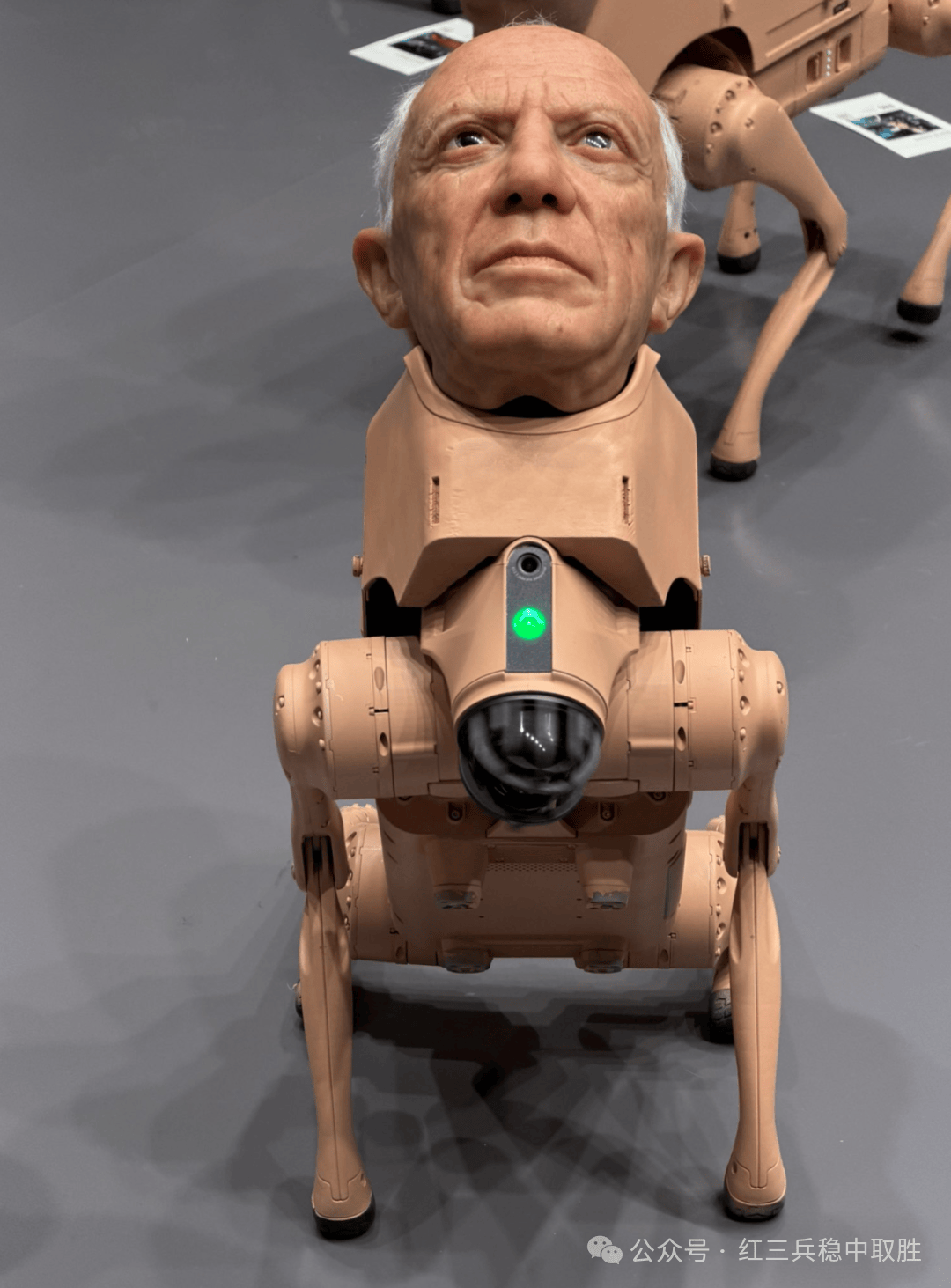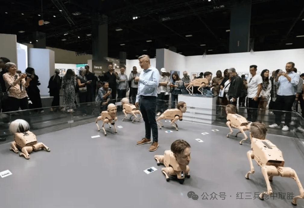 这些机器狗在展区里自由走动——同时用内置摄像头不断拍摄观众与环境,然后poop 出来打印照片或用风格滤镜或风格化处理,甚至部分带二维码可以兑换为 NFT。