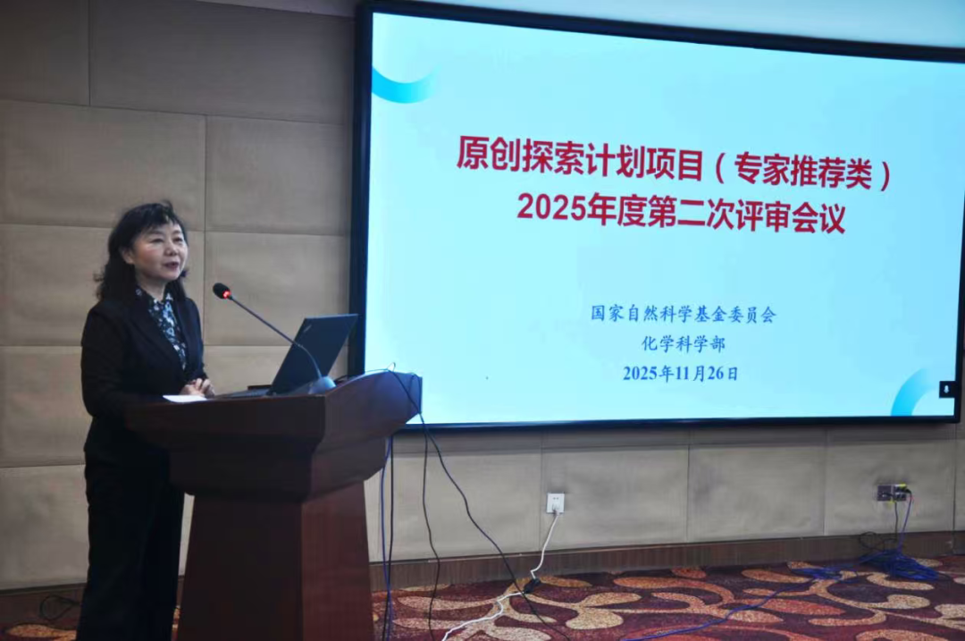 2025年11月26日,自然科学基金委化学科学部在北京召开国家自然科学基金原创探索计划项目(简称原创项目)(专家推荐类)2025年度第二次评审会议。自然科学基金委副主任吴骊珠出席会议并讲话,化学科学部常务副主任杨俊林主持开幕式。