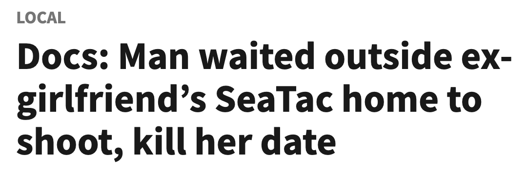 上个月24日,华盛顿州SeaTac一处宁静社区发生一起令人震惊的深夜枪杀案:一名男子因前女友开始新约会而妒火中烧,持枪伏击她与新伴返回住宅,在短短两分钟内连开九枪,夺走一条无辜生命。