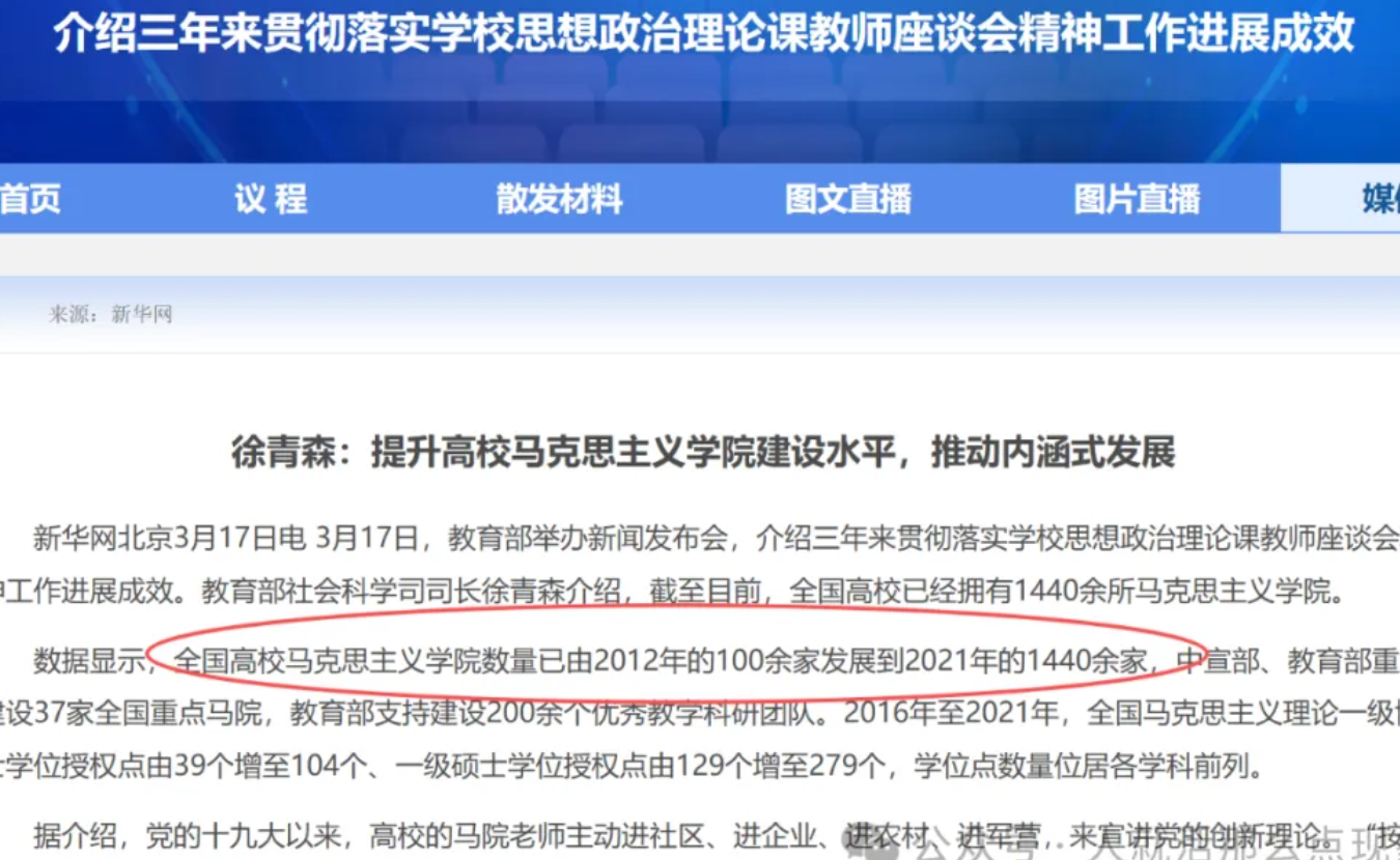 2014年那会,马克思主义学院(马院)还是名不见经传的小学院,但时至今日,马院已经是众多高校的香馍馍了,一度成为文科当中数一数二的学院和专业,甚至很多高校的教师招聘中,马院也是首当其冲,疯狂扩张。