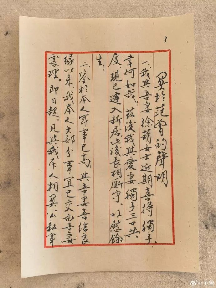 声明最后,范曾还提到自己会和妻子徐萌继续投身于国家文化艺术以及公益事业,从配图来看,这封声明还是范曾亲笔书写,末尾还有他的私人刻章,可以看出87岁的范老笔锋依旧是苍劲有力,可谓是宝刀未老,功力不减。