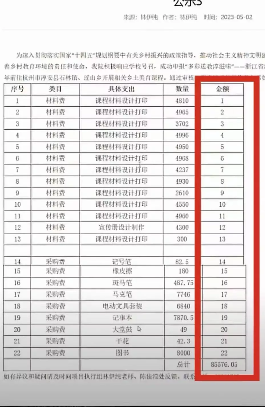 结果网友迅速放出他们的账目,估计实习生都不会做成这样:金额与序号完全一致!