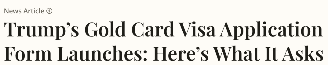 川普宣布“金卡计划”(Gold Card program)正式启动后,美国公民及移民服务局(USCIS)发布了潜在申请人需要提交的申请表格。