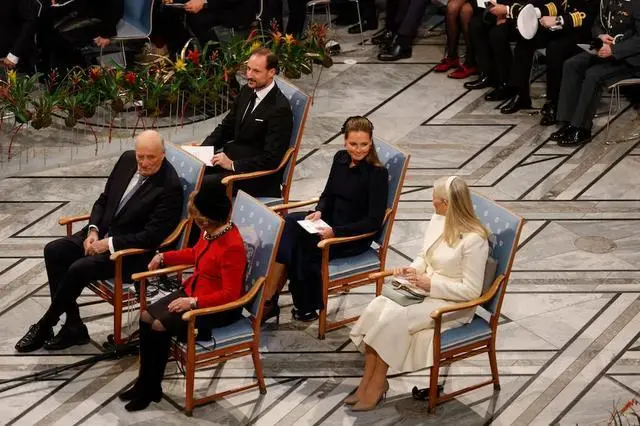 当地时间12月10日晚,挪威王室一家五口,坐在奥斯陆市政厅内最醒目的位置,出席今年的“诺贝尔和平奖”的颁奖典礼,这也是唯一一个不在斯德哥尔摩颁发的诺贝尔奖。