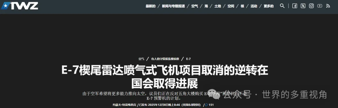 E-7预警机项目复活,获得6.47亿拨款世界的多重视角