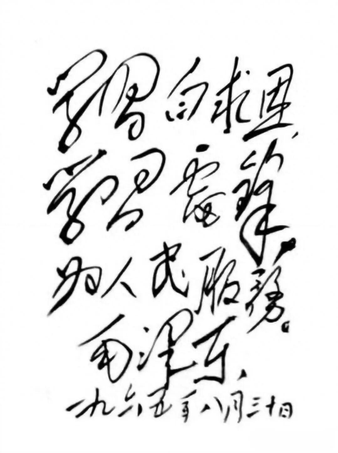 这个事情众所周知。钟学坤曾经在庐山为毛主席做过保健工作。毛主席为了鼓励刚大学毕业的钟学坤,也为了让她好好工作、继续学习、脚踏实地为人民服务,写下了这样的字迹:“学习白求恩,学习雷锋,为人民服务。一九六五年八月三十日”。这幅题字作品,在书写格调上与众不同。