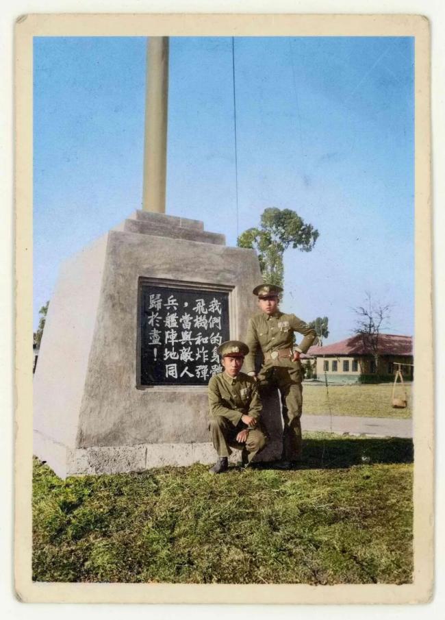 这张照片中的石泰庚烈士,1914年生于江苏如皋,毕业于中央航空学校第九期,后又在新疆接受苏联空军教官培训,先后立有战功六次,击落日军飞机一架。1944年5月12日在陕西安康负责空中警戒时,不幸失事殉职。这是他与战友在中央航空学校校训前合影留念的照片。