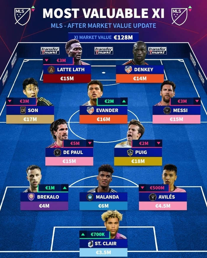 北京时间12月12日,德国《转会市场》更新了美职联球员身价,梅西在率队夺得总冠军后,身价依然下降300万欧,来到了1500万欧。孙兴慜以1700万欧列第二,普吉1800万欧居首。