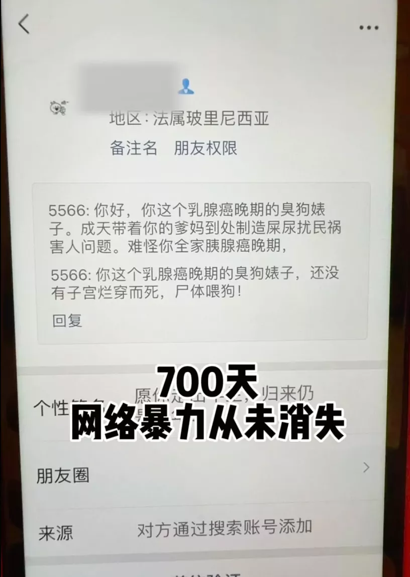 答案是素不相识,无冤无仇。网暴的男人发现Penny真的去警局报案后,立马把她拉黑,并更换了头像封面。