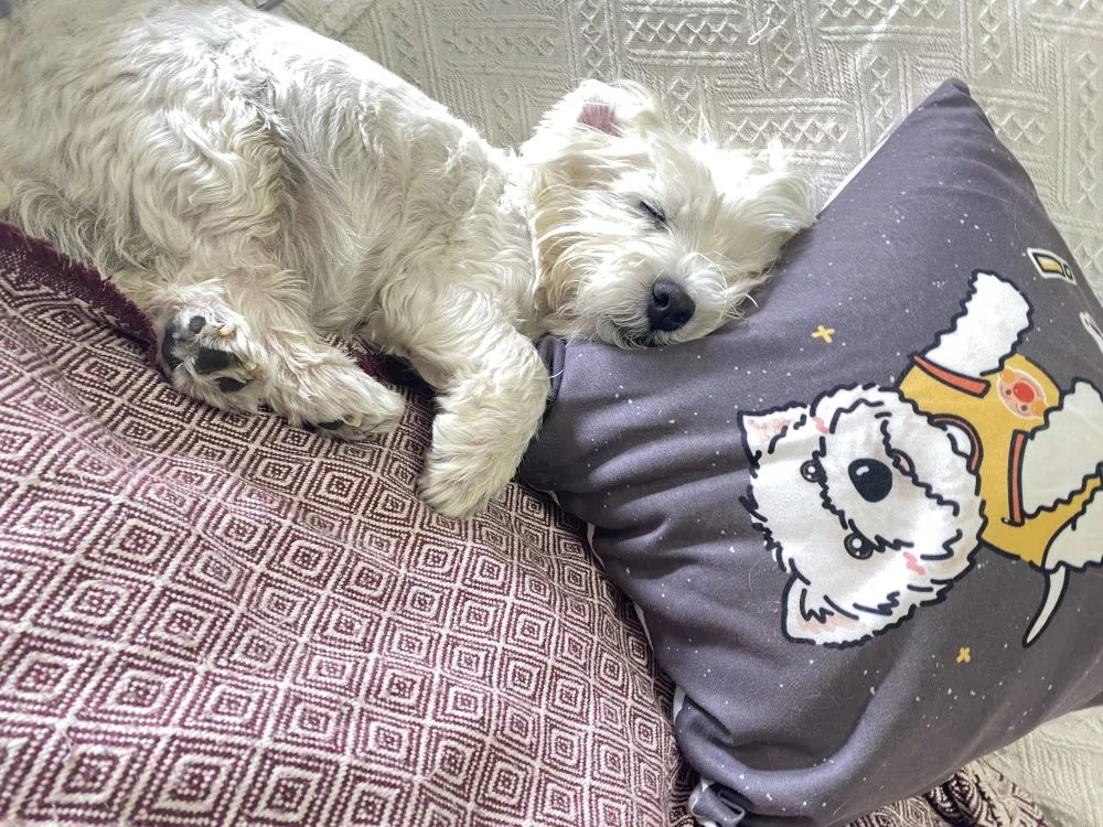 小狗叫Papi,是只步入老年的西高地白梗。他有双圆溜溜的眼睛,到离开时依旧努力睁得很大。如果当时平安走下手术台,几个月后就是它13岁的生日。