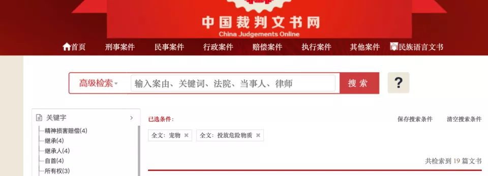 Penny又在新闻和裁判文书网里寻找可参考案例。大量检索后发现,北上广深宠物中毒的新闻,仅可以检索到警方立案,但都没有下文,裁判文书查无可查。