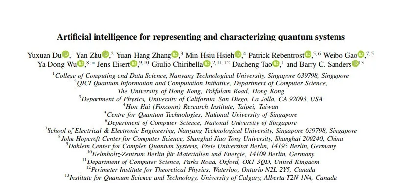 论文题目:Artificial intelligence for representing and characterizing quantum systems