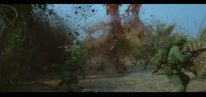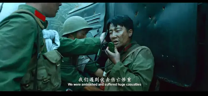 镜头强迫观众持续凝视战争最混乱血腥的一面,没有剪辑喘息之机。当刘峰手臂中弹,镜头随之剧烈摇晃并逐渐失焦,观众的身体仿佛与角色一同“中弹”。