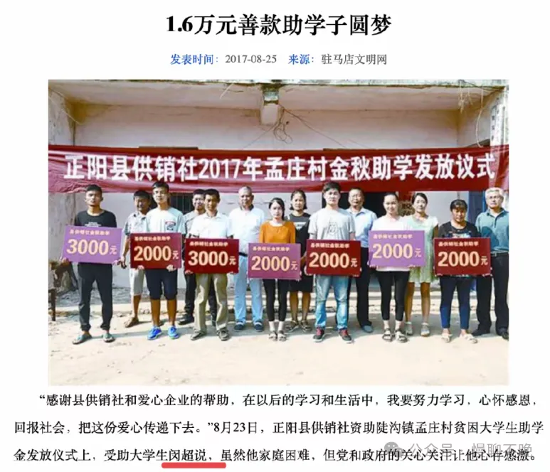 闵超本人是郑州大学2017级的本科生,2020年以综合专业第一推免至浙江大学,攻读马克思主义基本原理专业硕士研究生。