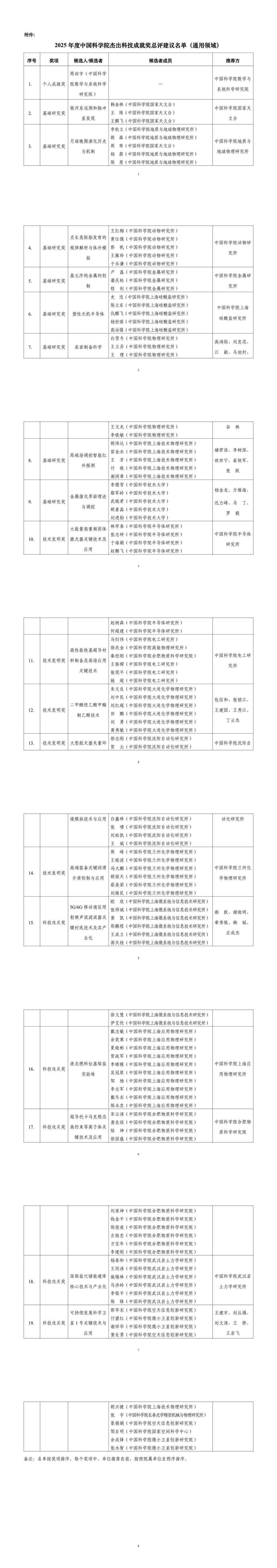 附件:2025年度中国科学院杰出科技成就奖总评建议名单(通用领域)