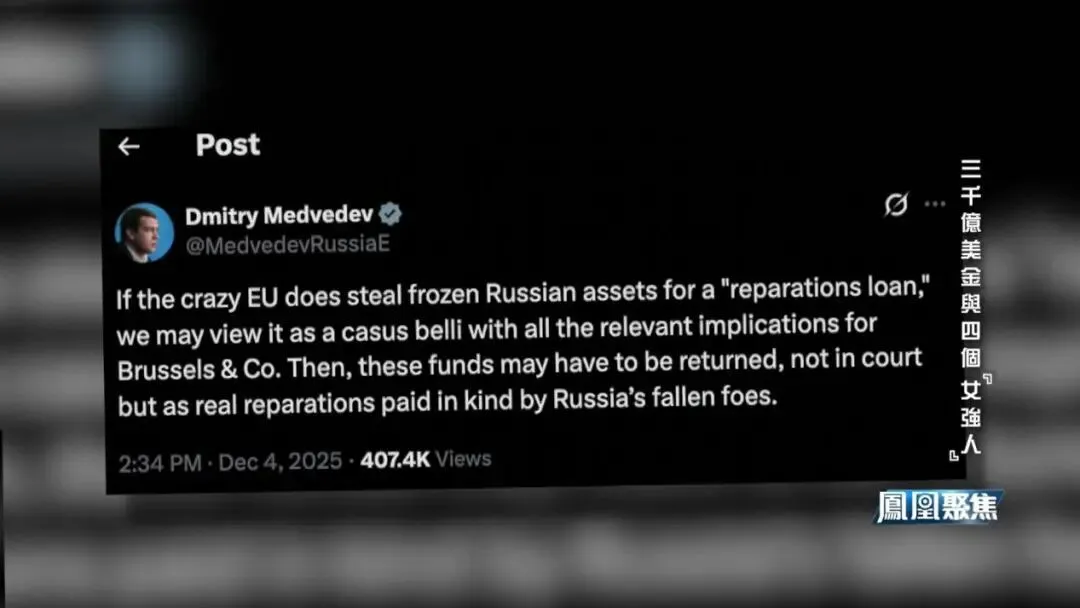 连日来,围绕着这笔上千亿美元的冻结款,一场多方的博弈大戏正在上演。俄联邦安全会议副主席梅德韦杰夫将矛头直指西方,他通过个人社交账号发声:倘若欧盟真的打算以发行“赔偿贷款”为幌子,侵占被冻结在比利时的俄罗斯资产,那么按照国际法规定,该行为可能被认定为特殊宣战事由,欧盟各个成员国都将无法规避随之产生的一切后果。