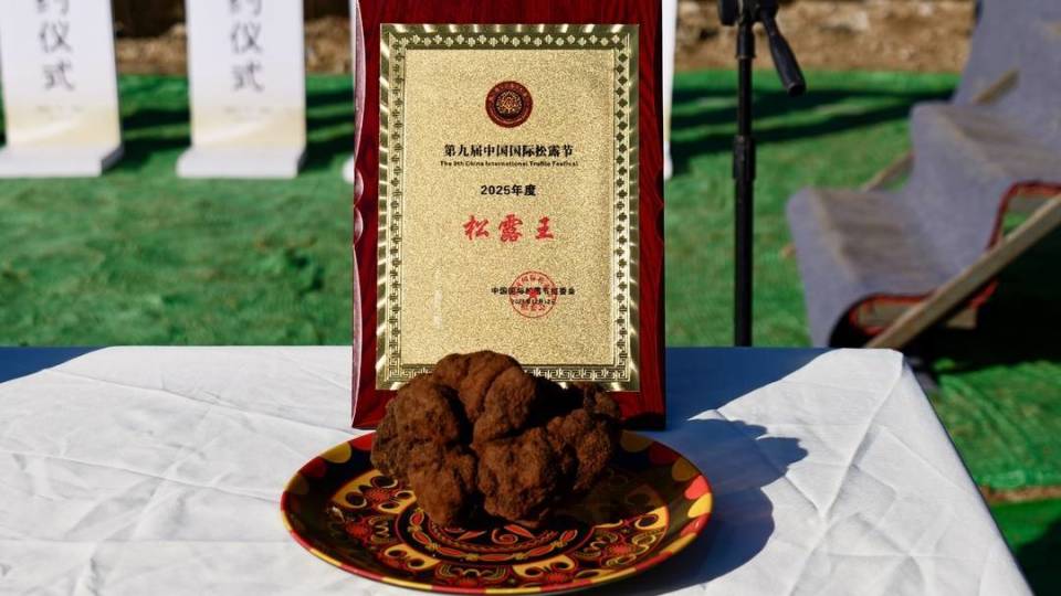 12月12日,四川省攀枝花市松露农文旅产业融合发展会,在盐边县格萨拉乡举行。活动当天,在2025年中国松露王族年度评选及颁奖活动中,重910克的中华黑松露获得“松露王”称号,重310克的攀枝花白松露获得“松露皇后”称号。