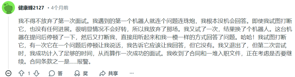 最惊悚的一个细节是:多位求职者报告,那个AI面试官聊着聊着,竟然开始模仿他们的语音语调说话。这让他们坚信了自己的判断。