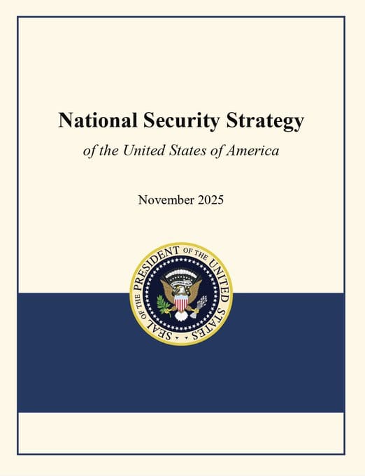 美国川普政府公布最新、2025年版《国家安全战略》。图为报告封面。 图:翻摄「X」@LyleJMorris