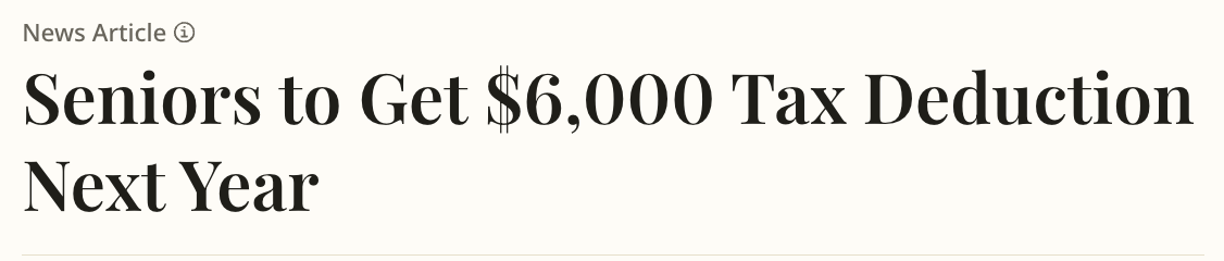根据川普签署的《大而美法案》(One Big Beautiful Bill Act),美国65岁及以上的纳税人明年将获得一项新的$6,000奖励性税收扣除。