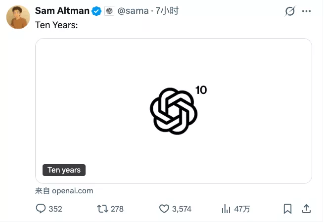 12月12日,在正式上线GPT-5.2的同时,OpenAI CEO萨姆·奥尔特曼(SamAltman)发布了一篇十周年纪念文章中这样说。