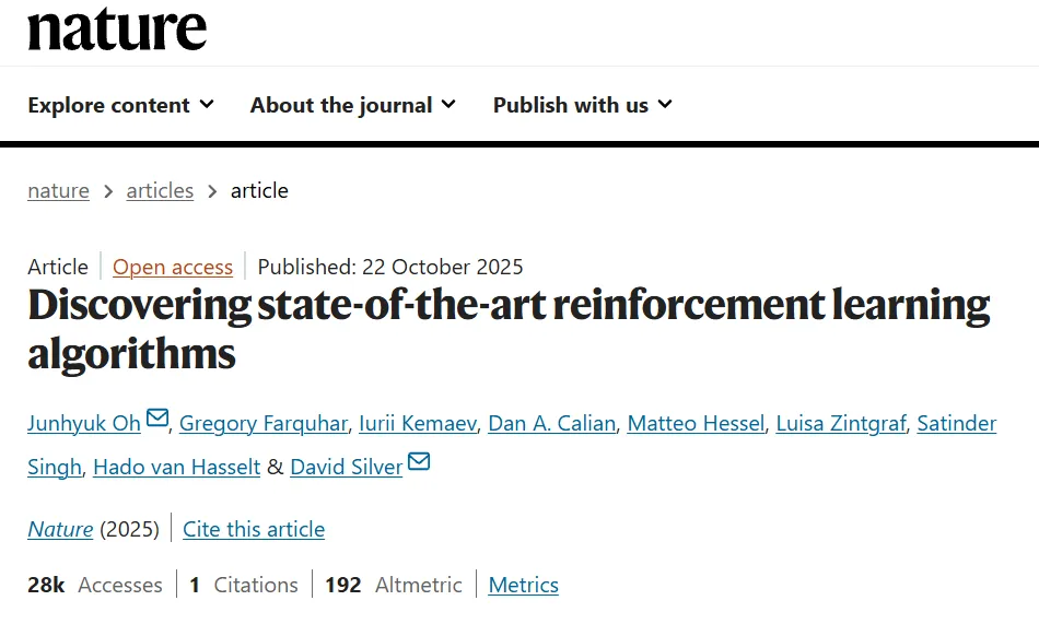 近日谷歌DeepMind宣称发现了最先进的强化学习算法,该算法拥有独特的预测语义与自适应机制,在 Atari 等多类经典基准任务上性能超越 MuZero 等人类设计算法,且具备优异的跨领域泛化能力。目前该研究成果已发表在《Nature》期刊。