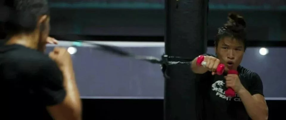 这部纪录片,反传统、反高潮,它不对准张伟丽战斗的高光时刻,也不让人感觉到直接冲击的燃、爽或是催泪,它的时间线直接从2021年开始,而这一年,正是张伟丽职业生涯的低谷时期。