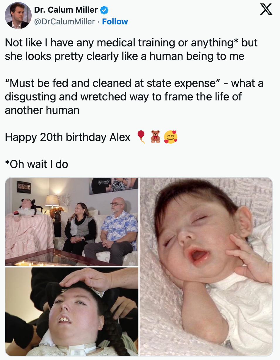 2025年11月,生活在美国内布拉斯加州的亚历克斯·辛普森(Alex Simpson)再次打破了死亡预言,成为了积水性无脑畸形(Hydranencephaly)幸存者中极罕见的案例。