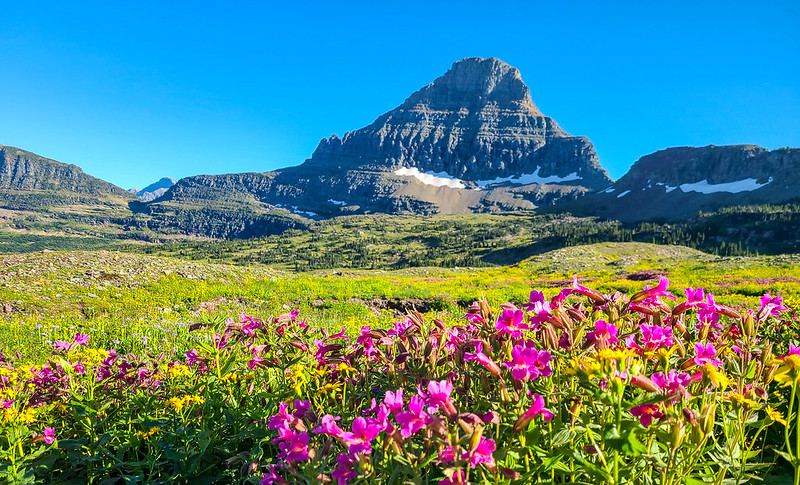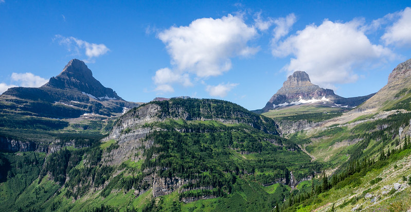 Day 1,Going to the Sun Road向阳大道. 这是公园里横贯东西的一条观光路线,沿途风景如画。但是从西边进需要预定,从东边却不需要。这条路建成于30年代,沿着山腰而建, 近一百年历史, 就当时的条件来说,是一项了不起的工程