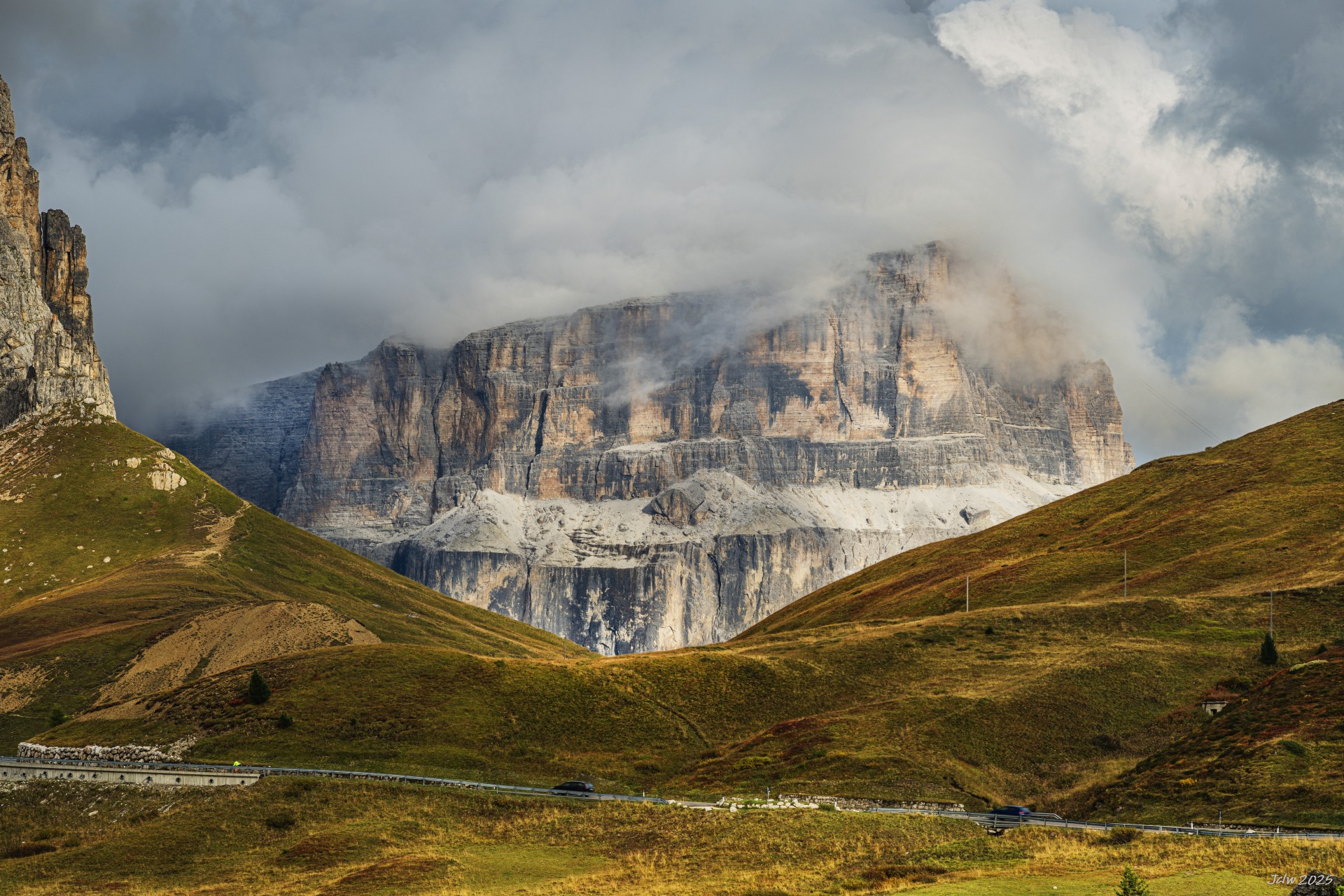 P2 塞拉山口东南波尔多伊山口上方的的波尔多伊岩峰(Sass Pordoi),与塞拉峰塔是连体的不同区域