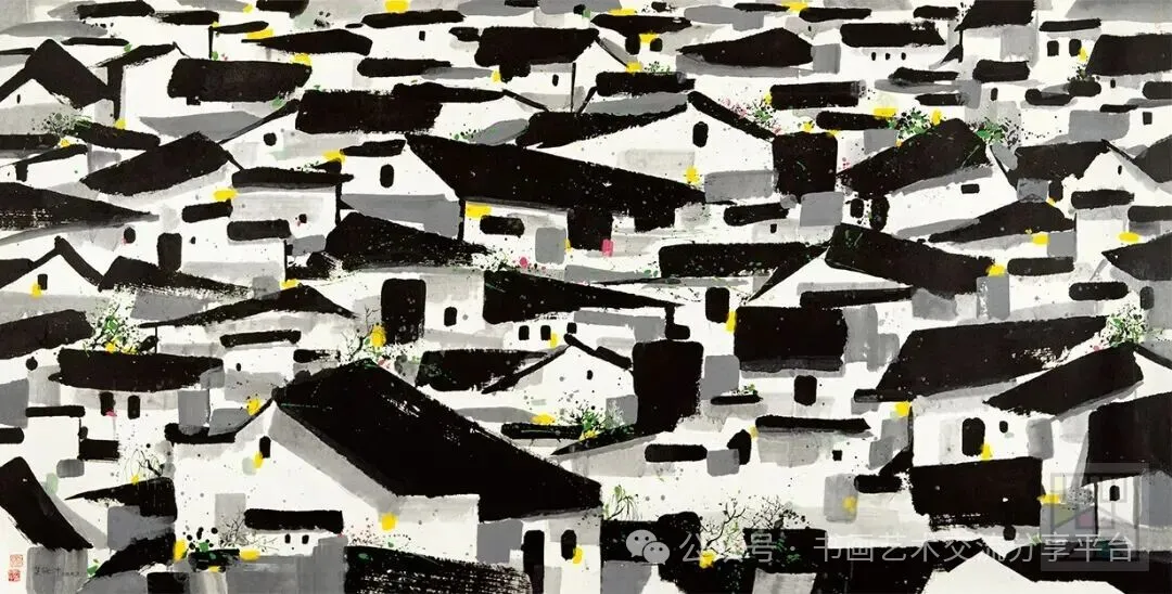 吴冠中曾直言:“形式美有其内在的数学规律”,这句话刺破了艺术与科学的壁垒,为中国现代美术的形式探索提供了极具思辨性的理论支点。在他的画笔下,江南水乡的黑瓦白墙、黄土高原的沟壑纵横,皆不是自然物象的简单复刻,而是被提炼为点、线、面的几何排布,暗含着黄金分割、对称均衡、节奏韵律的数学逻辑,让东方写意的灵动与西方构成的严谨达成了精妙的平衡。
