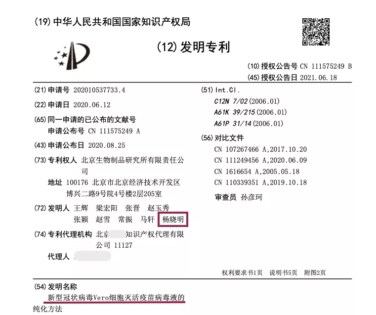 杨晓明曾被誉为“中国新冠疫苗之父”,曾任中国医药集团有限公司总工程师、首席科学家,中国生物技术股份有限公司首席科学家。在新冠疫情中,他带领团队成功研发上市全球首款新冠灭活疫苗。