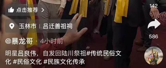 12月13号,多位来自广西陆川的网友分享了一段祭祖的画面,细看之下可以发现,被众人簇拥的便是明星吕良伟。