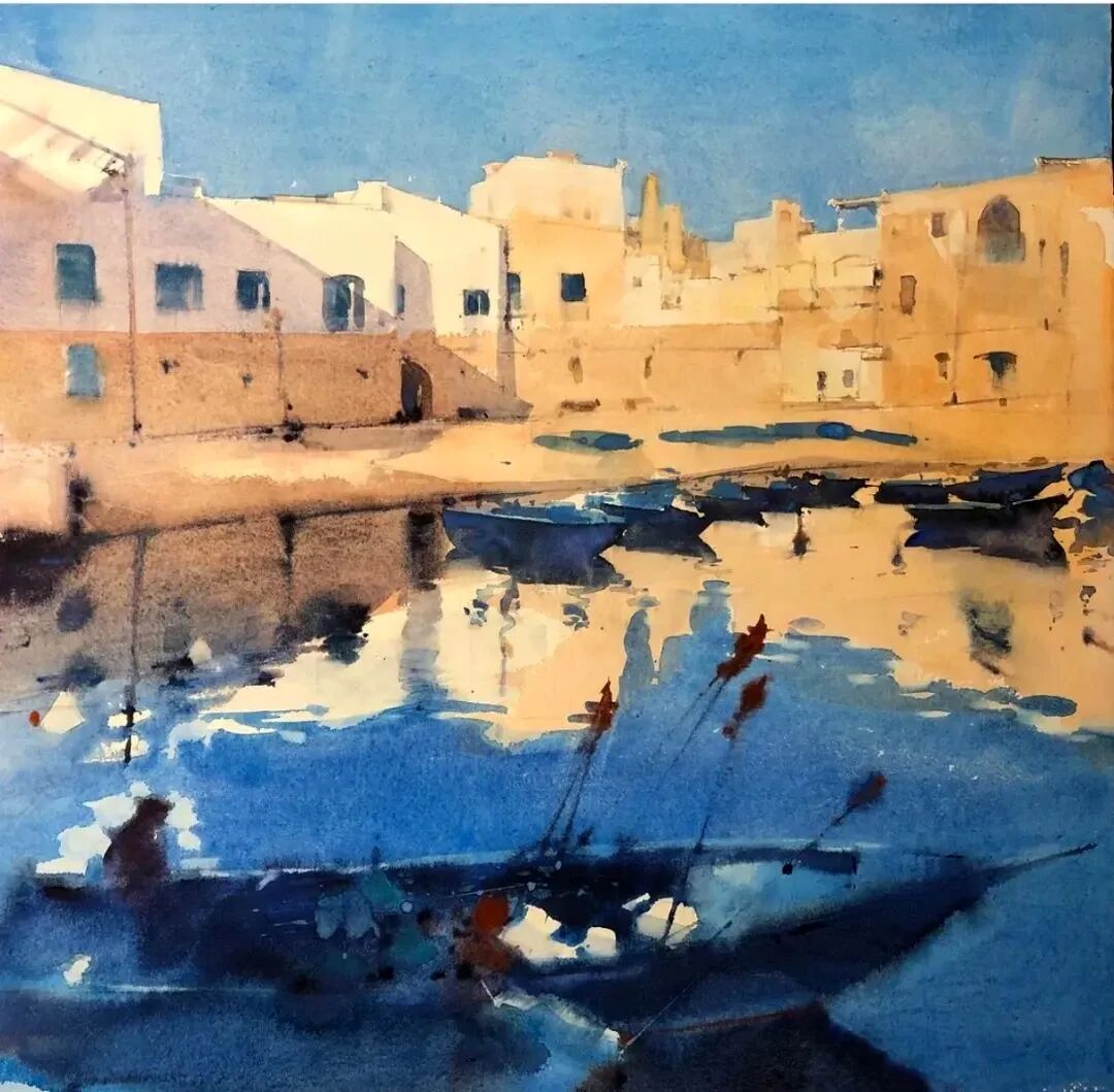 在水彩画的斑斓世界里,积水与沉淀,是两位塑造画面灵魂的“隐形艺术家”。它们以独特的方式,为作品披上一层厚重而富有质感的纹理外衣。 积水法,是水彩画中的“水之舞”。在纸面上局部铺陈大量清水,如同为颜料搭建了一个自由的舞台。随后,轻轻点入颜料,水便成了引导者,带着色彩缓缓流淌、汇聚,形成自然而不规则的积聚。 这一过程,模拟了水面的波光粼粼,赋予画面以动态美感,让静态的画作也仿佛拥有了生命的律动。