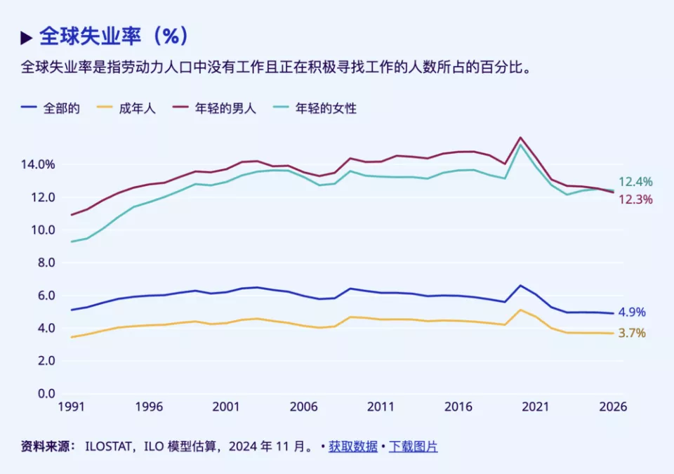 中国的求职难自然不必多说,大家都有体感:每个人的身边一定都有几个为找工作焦虑的毕业生。而在全球,年轻人的失业率也远远高于成年人以及全部人口的比例。