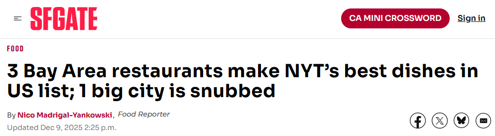 湾区3餐厅入选纽时全美最佳榜单SFGATE