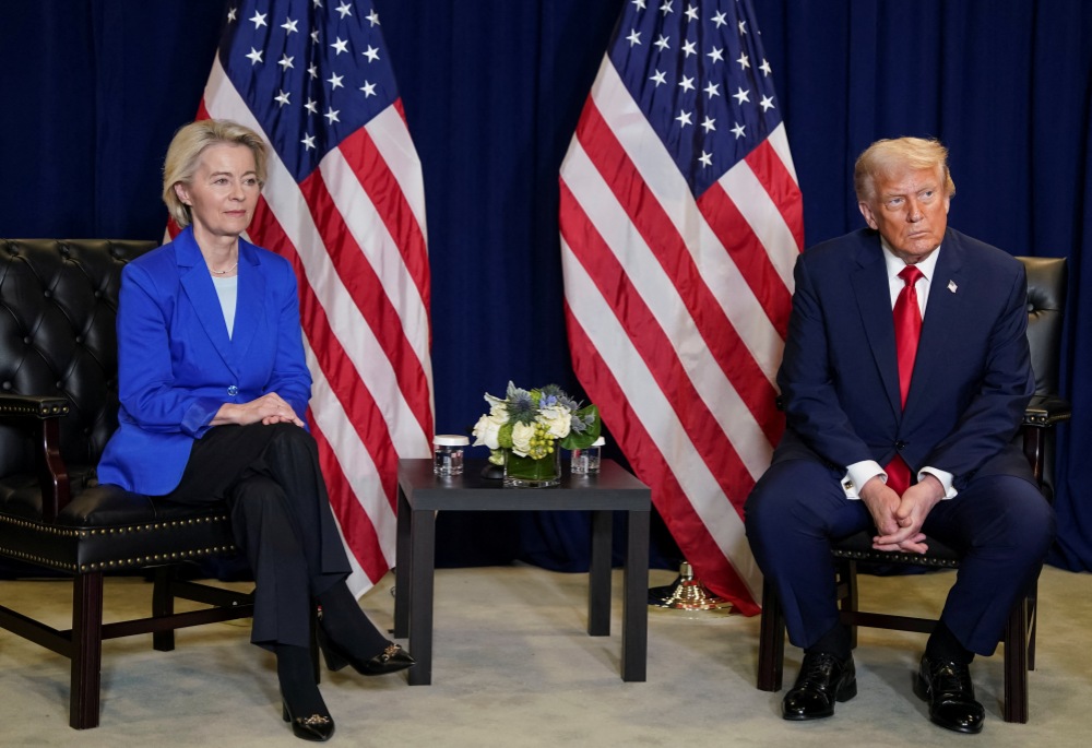 当地时间2025年9月23日,美国纽约,第80届联合国大会期间,欧盟委员会主席冯德莱恩与美国总统特朗普举行会晤。 IC Photo