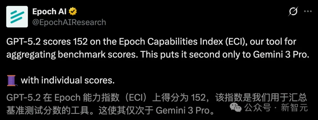 年终AI大戏,OpenAI败给了谷歌?GPT-5.2上线48小时,全网吐槽一大片。第三方数据实证,Gemini 3 Pro才是真正的王者。 OpenAI打出了GPT-5.2这张「年度王牌」,却没有打赢谷歌... Epoch AI最新报告,GPT-5.2的能力指数(ECI)得分152,仅次于Gemini 3 Pro。 在多项基准测试中,GPT-5.2的实力并没有「全线霸榜」。
