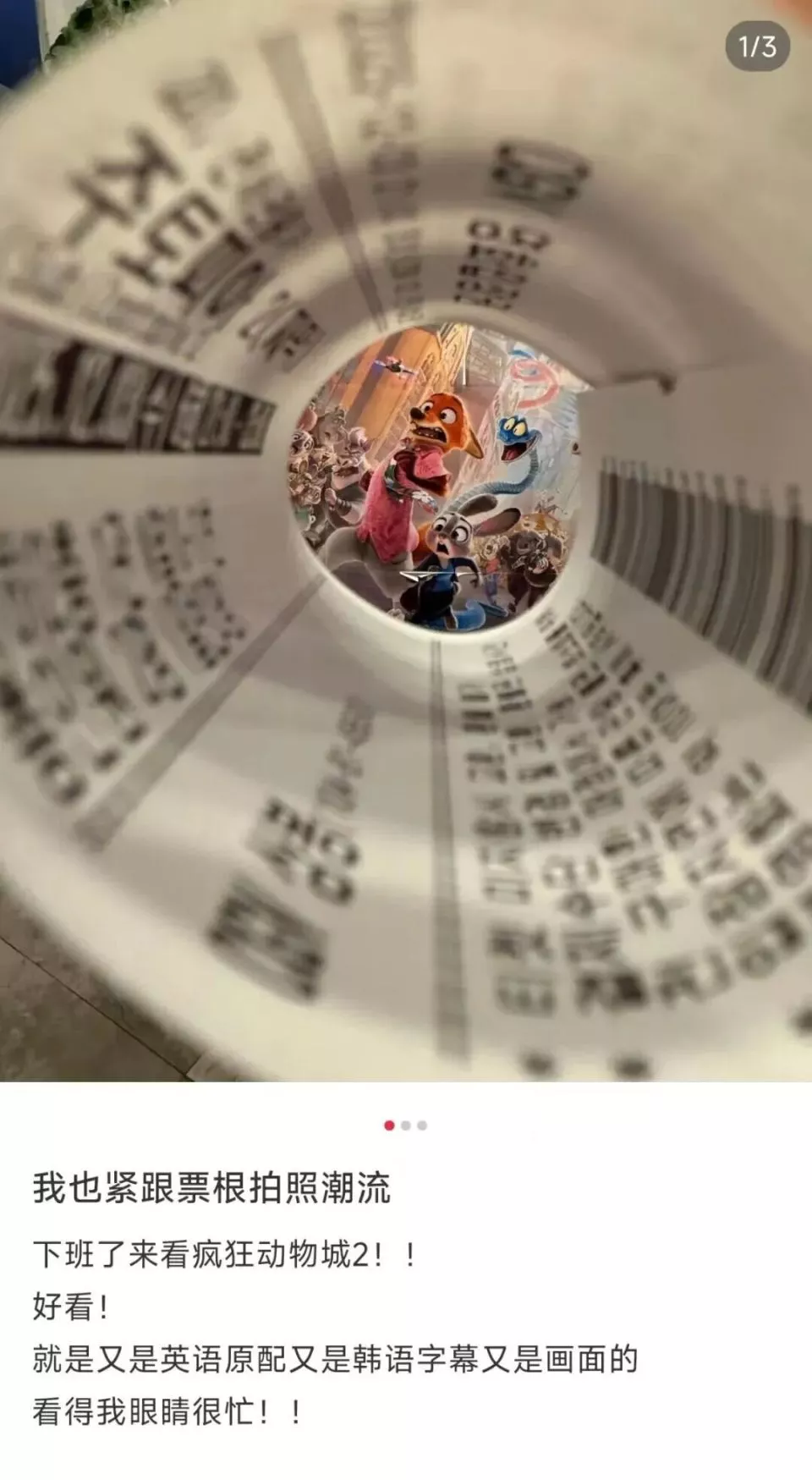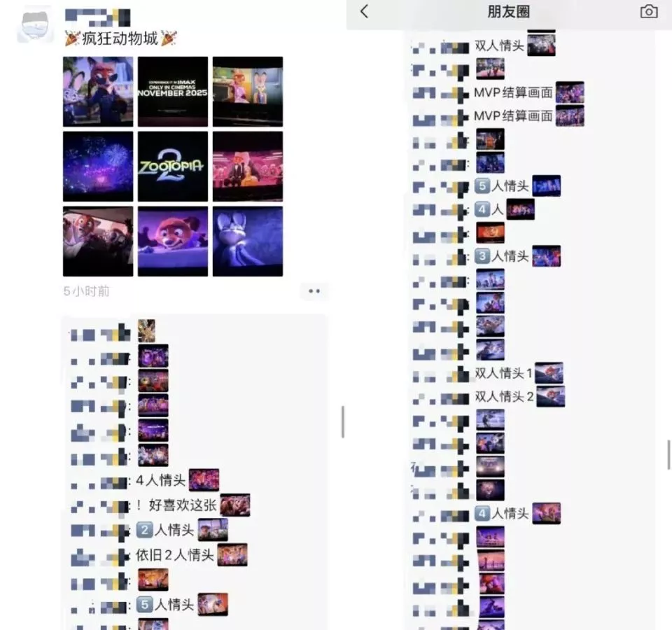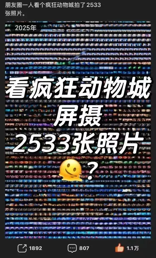 “朋友圈有个人看疯狂动物城拼了几百张图发朋友圈,感觉能在他的拼图里面看完故事情节了。”