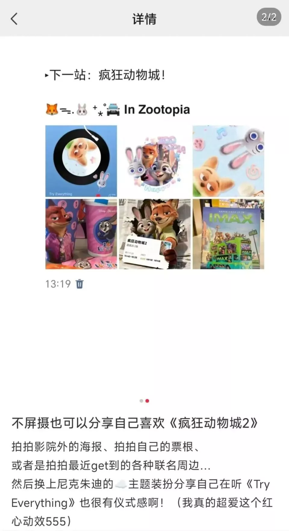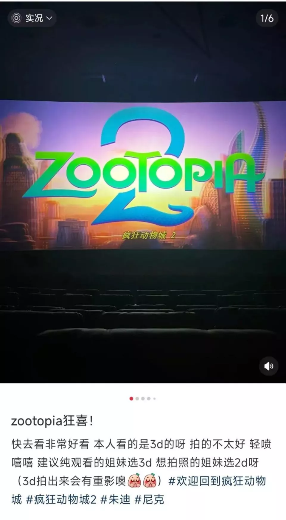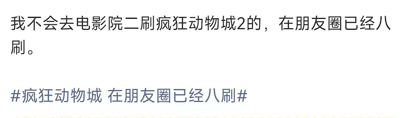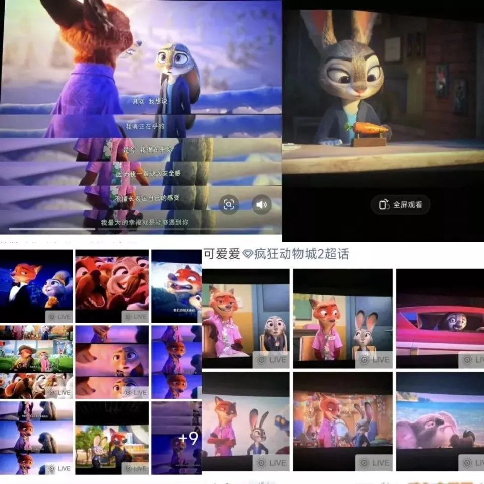 随着电影剧情的发展,朱迪和尼克在银幕里上演深情告白,越来越多的观众举起手机,对准银屏,迫不及待地将关键剧情定格、录制,分享到社交平台。