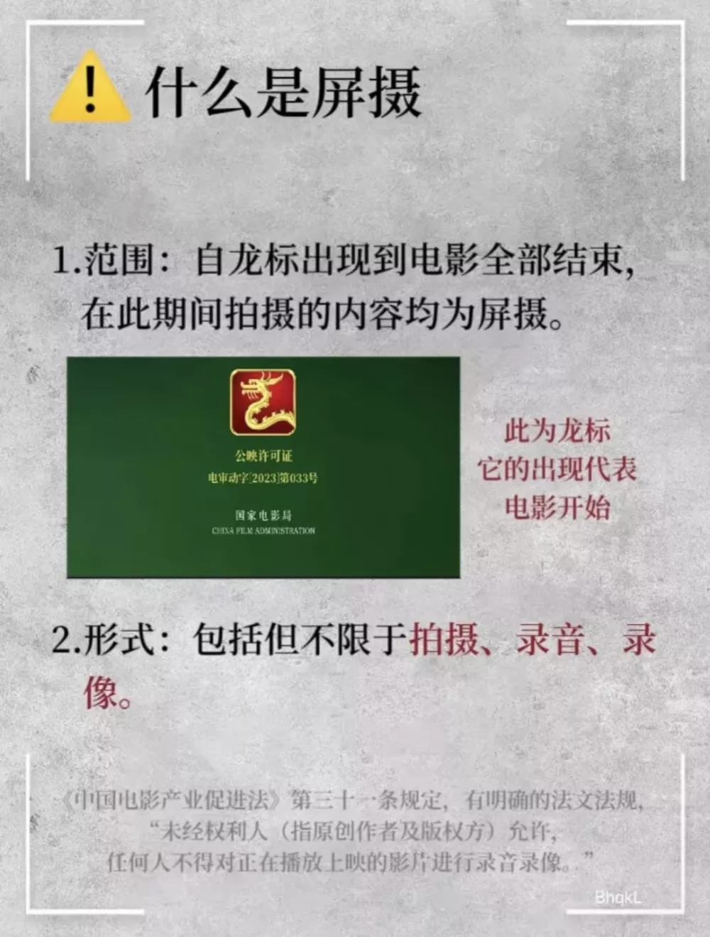 事实上,在观影过程中,在龙标之后对着银幕拍下的任何一帧画面、任何一段视频,都算“屏摄”。