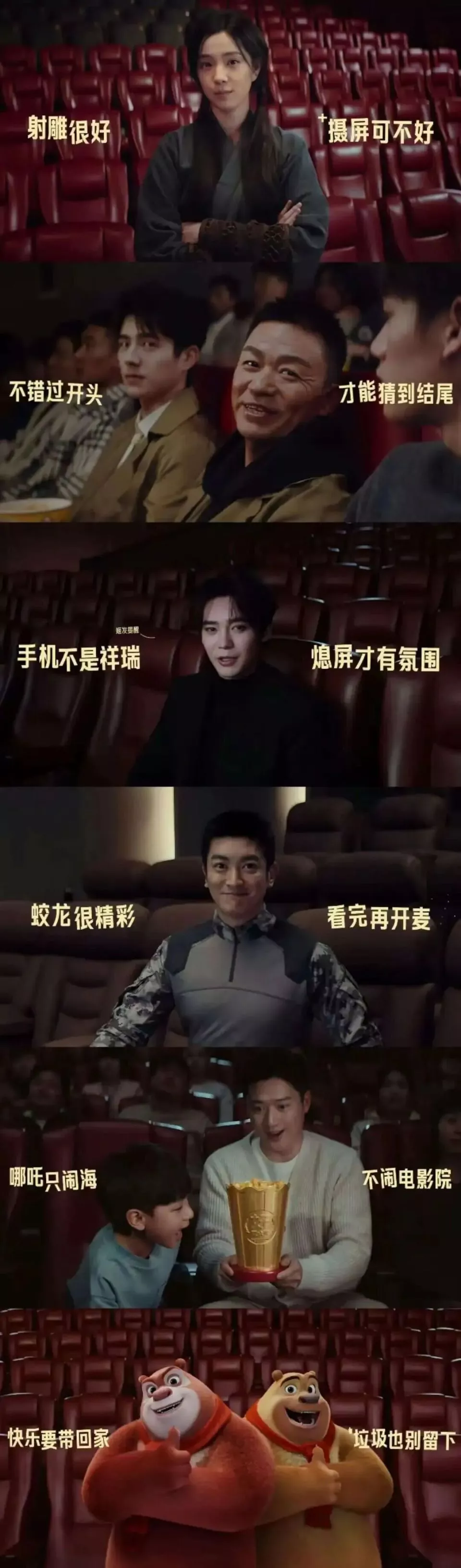 电影宣传方也为此做出很多努力。今年春节档,公映的6部作品共同发布了抵制“屏摄”的观影提示。