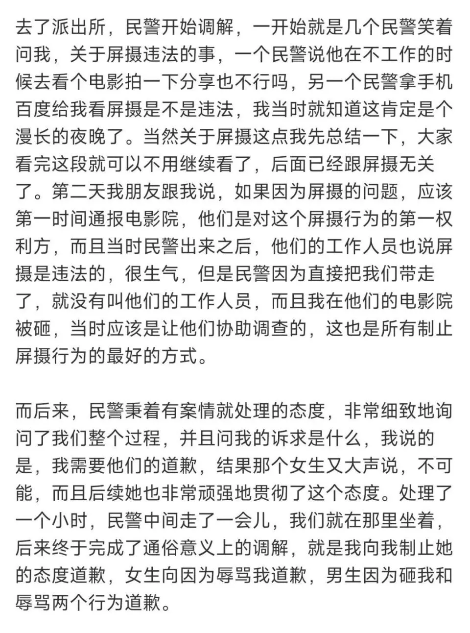 在去年春节期间,一位博主因为观影时劝阻“屏摄”,最终发展为骂战事件,只能前往公安局调解。