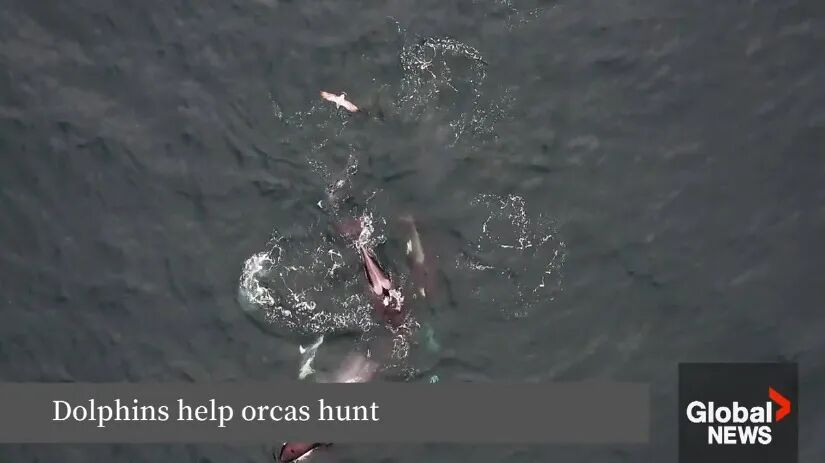 UBC(UBC)的研究人员近日获取了罕见的水下及空中影像,记录到北方常驻型虎鲸与太平洋白侧海豚共同觅食的画面,揭示了两种物种之间出人意料的协作关系。