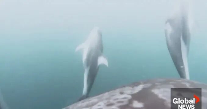 加海域罕见一幕:虎鲸与海豚联手捕食加西网