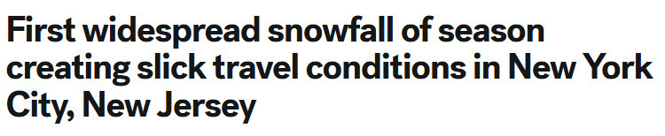 美国国家气象局已对新泽西部分地区发布冬季风暴警报(Winter Storm Warning),并对纽约市及三州大部分地区发布冬季天气提醒(Winter Weather Advisory),警报持续至周日。