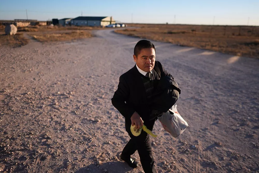 2025年1月19日,前中国官员李传良在德州米德兰市的五月花教堂社区行走。(美联社)