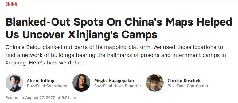 图为BuzzFeed News新疆系列报道之一,发布于2020年8月27日